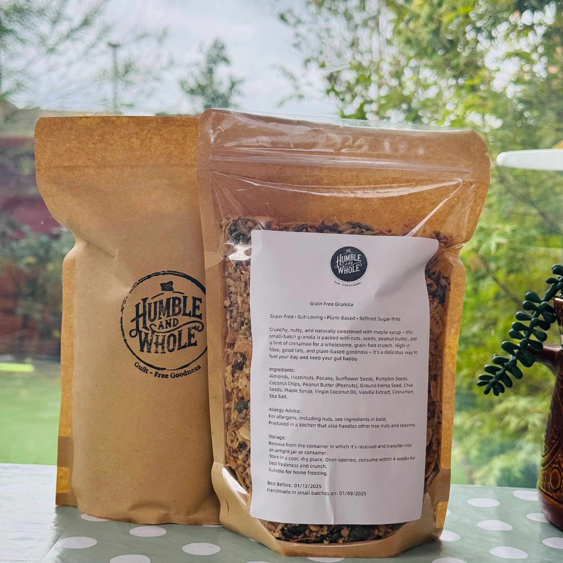 Nutty, crunchy, and naturally moreish — this small-batch granola blends roasted almonds, hazelnuts, pecans, and seeds with creamy peanut butter, a drizzle of maple syrup, and a hint of cinnamon for warmth. Packed with good fats, plant protein, and fibre, it’s a wholesome way to fuel your mornings, top your yogurt bowls, or enjoy straight from the jar.